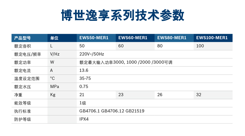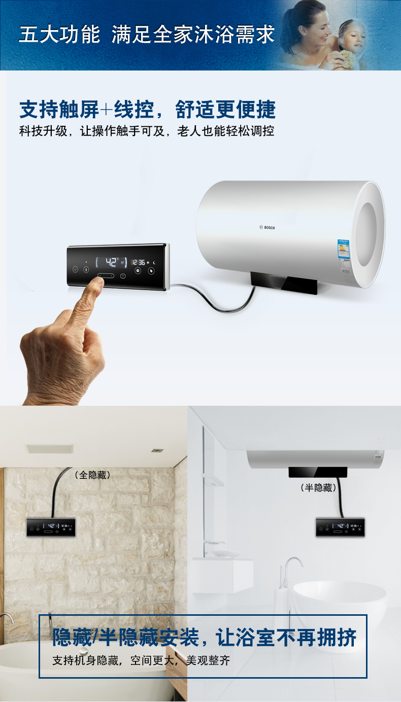 電子式控制,無(wú)機(jī)體控制器,遠(yuǎn)程線控器,可隱藏或半隱藏安裝。可選容積為50L/60L/80L/100L。