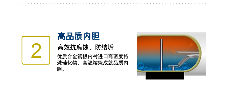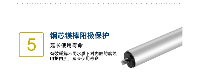 鋼芯強(qiáng)力陽(yáng)極棒,有效緩解不同水質(zhì)下對(duì)內(nèi)膽的腐蝕,大大延長(zhǎng)熱水器的使用壽命。